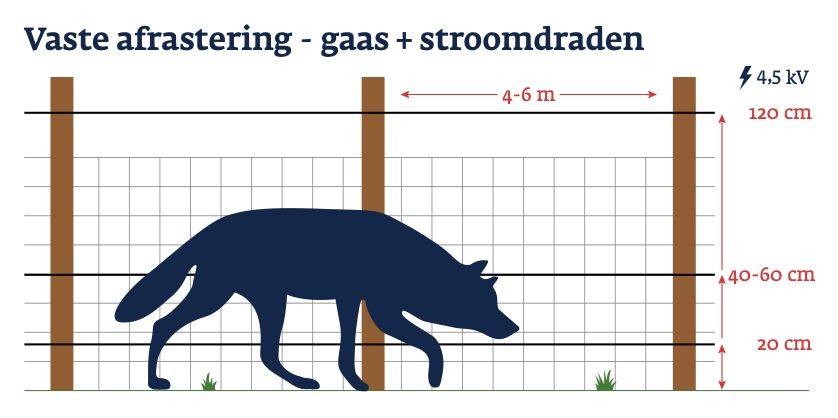 Vaste Wolf afrastering met gaas en stroomdraden
