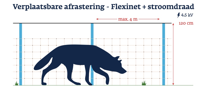 Verplaatsbare Wolf afrastering met Wolfnet en stroomdraden