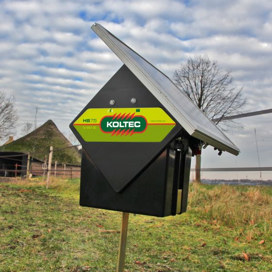 Koltec HS75 schrikdraad apparaat incl 10Watt zonnepaneel, 24 Volt adapter en ingebouwde accu.