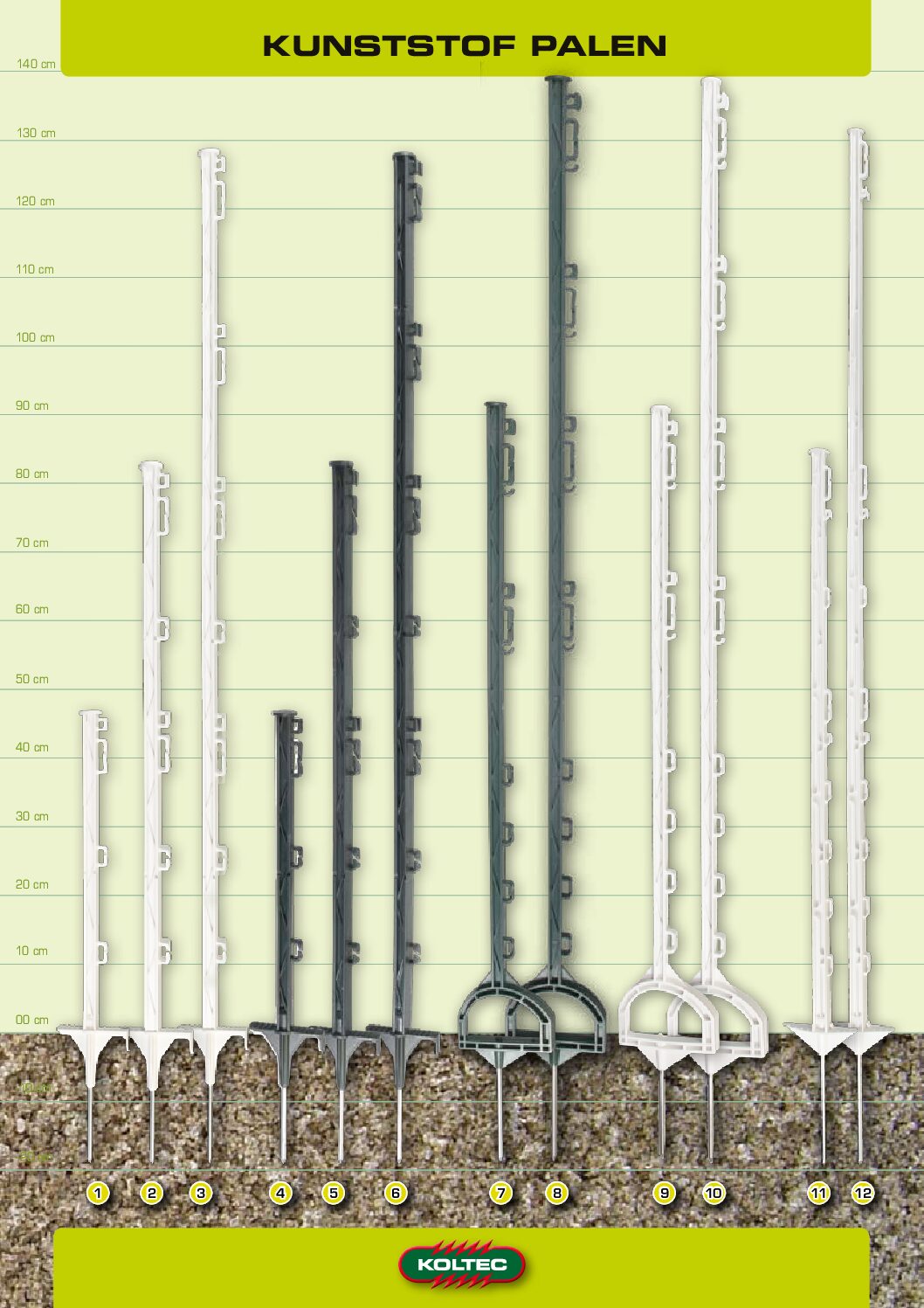 Koltec Palen kunststof wit 154cm 10 stuks, afrasteringshoogte 130cm.