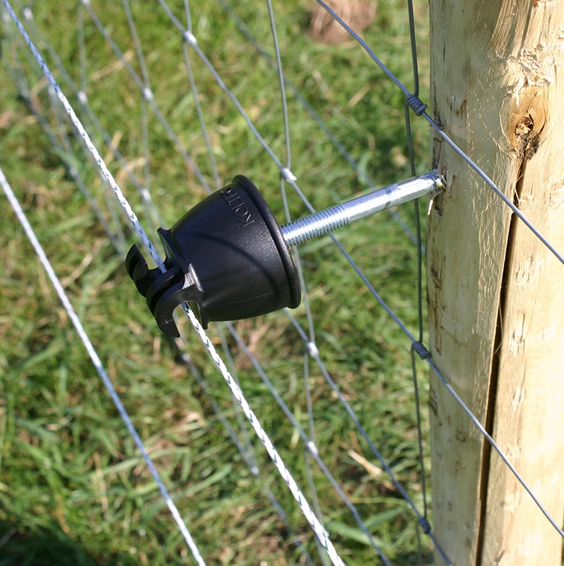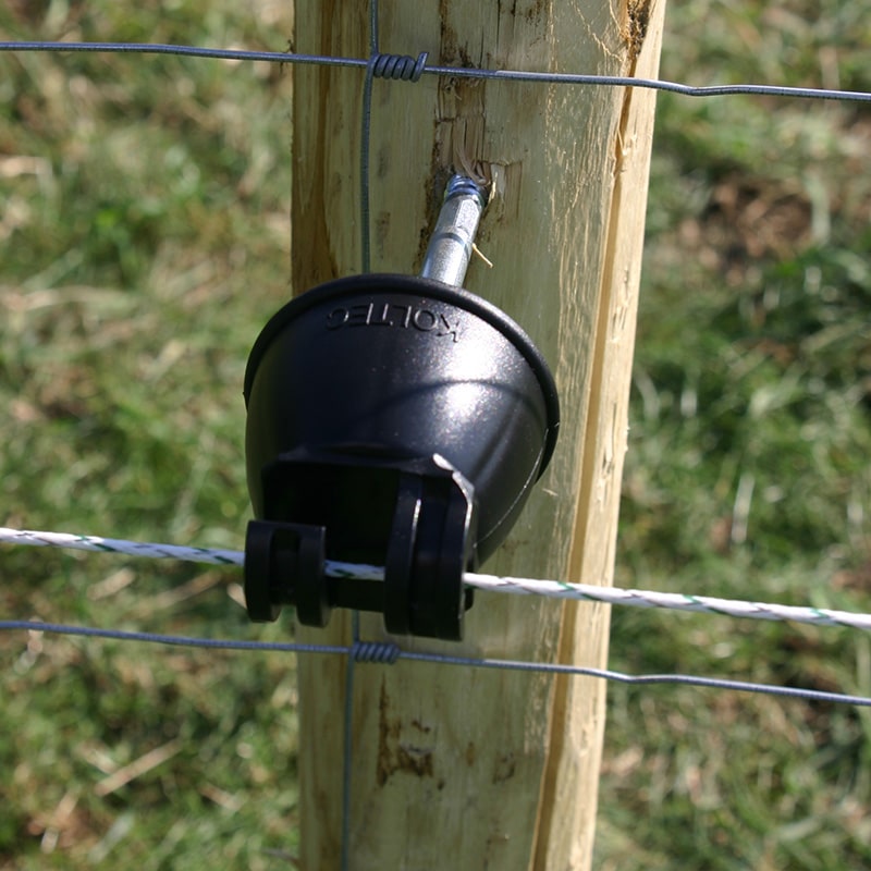 Koltec W-Rok isolatoren, incl. steun. Sleufisolatoren, groot, incl. korte steun voor houten palen.