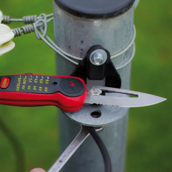 Het is een mes, een tester en een moersleutel. Het is een handig en degelijk zakmes, gecombineerd met een goede draadloze afrasteringstester met meerdere niveaus’ en moersleutel. Een onmisbaar accessoire als je veel in het veld aan het werk bent. Het mes is vergrendeld, klapt niet uit.